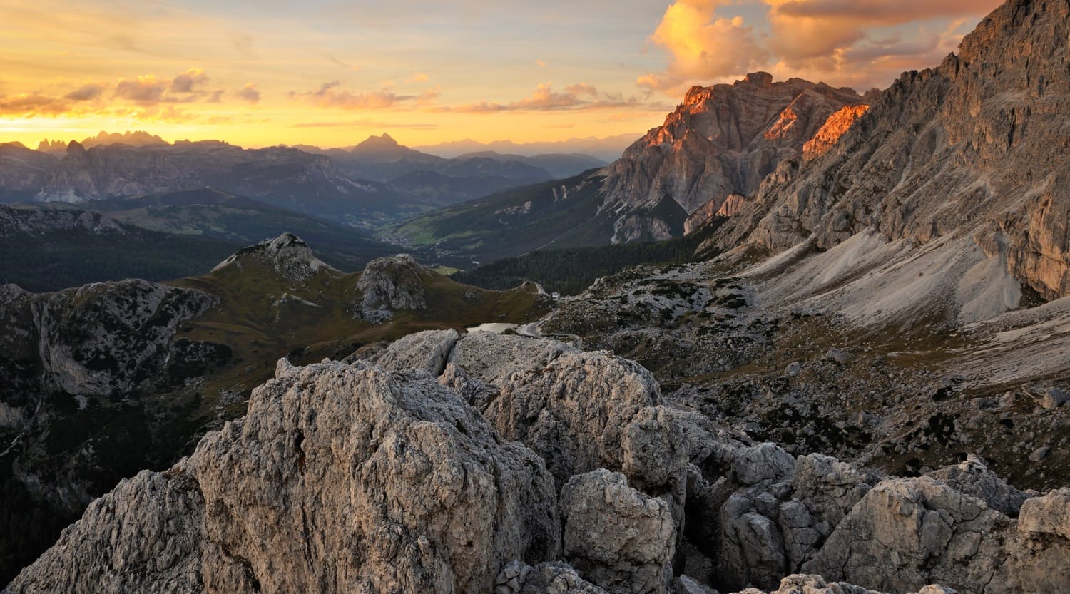 Enter a natural paradise, where everything you see can be discovered by walking, hiking, climbing or biking. A world of endless outdoor possibilities, surrounded by what have been called the world's most beautiful mountains. The pale mountains, as the Dolomites are called in the local legends, strike with their exceptional beauty: sharp peaks of pale rock resembling towers, castles and cathedrals, raise up to the sky from the gentle meadows and hilly woods of Val Badia valley. At dusk, their pale grey visage turns to bright shades of orange, red and pink, a one-of-a-kind natural display called "enrosadira" (alpenglow) in the local Ladin language.